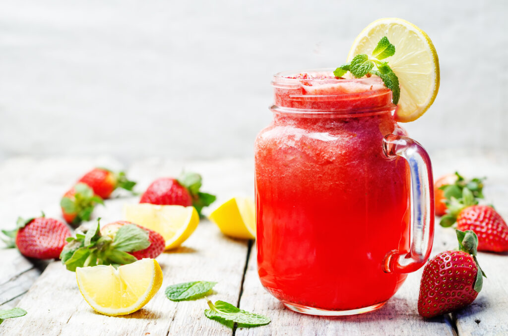 - Garnish with a strawberry and a lemon slice.